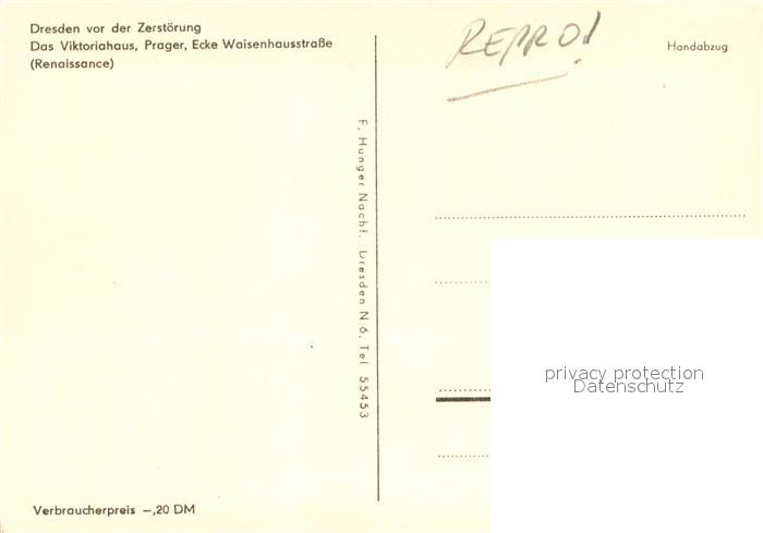 73744846 Dresden Elbe Viktoriahaus Prager Ecke Waisenhausstrasse vor der Zerstoerung postalisch nicht gelaufen Erhaltung siehe scans [FriedD77] KatCode: 11110014262000