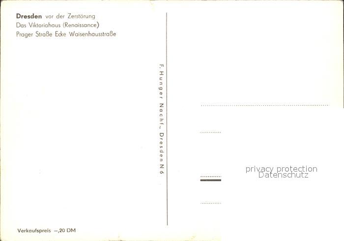 72365737 DRESDEN Elbe vor der Zerstoerung Viktoriahaus Prager Str Ecke Waisenhausstr postalisch nicht gelaufen Erhaltung siehe scans KatCode: 11110014262000