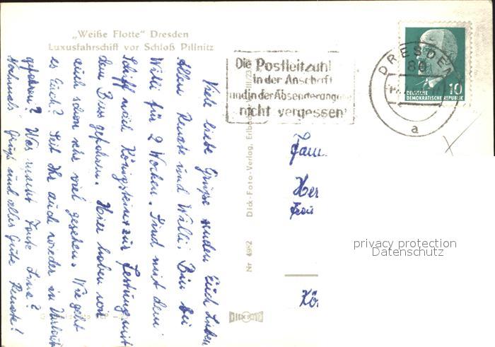 72119127 alte Postkarte DRESDEN Elbe Weisse Flotte Luxusfahrschiff vor Schloss Pillnitz postalisch gelaufen Erhaltung siehe scans KatCode: 11110014262000