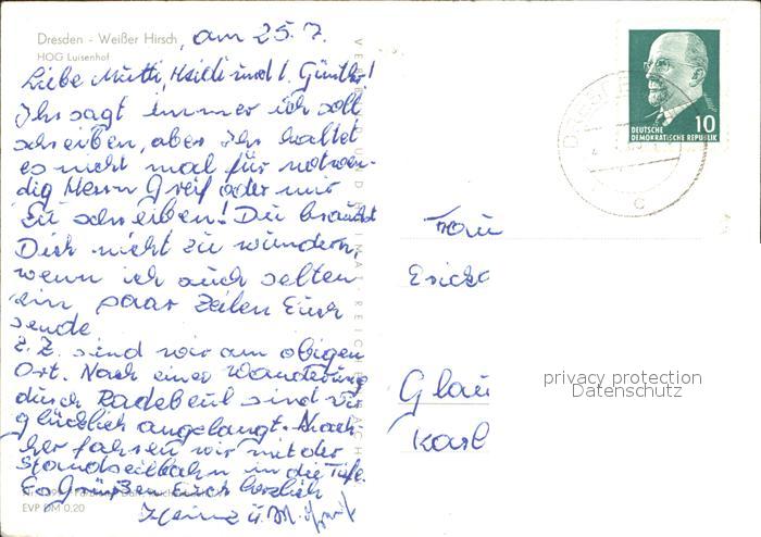 72105410 alte Postkarte DRESDEN Elbe Weisser Hirsch postalisch gelaufen Erhaltung siehe scans KatCode: 11110014262000