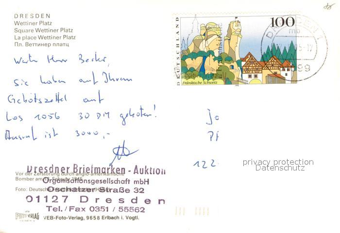 73716227 DRESDEN Elbe Wettiner Platz vor der Zerstoerung 1945 Vogelperspektive Repro postalisch gelaufen Erhaltung siehe scans [FriedD77] alte Postkarte Frie Katcode 11110014262000