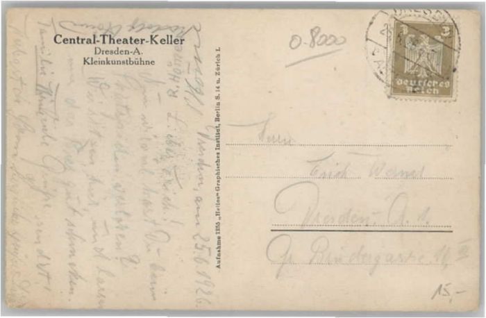 40643850 DRESDEN Elbe Zentral Theater Keller postalisch gelaufen Alte Ansichtskarte Postkarte alte Postkarte Katcode 11110014262000