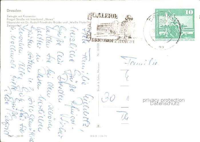 72249244 alte Postkarte DRESDEN Elbe Zwinger Kronentor Prager Strasse Interhotel Elbe Bruecke Weisse Flotte Zwingerhof postalisch gelaufen Erhaltung siehe scans KatCode: 11110014262000