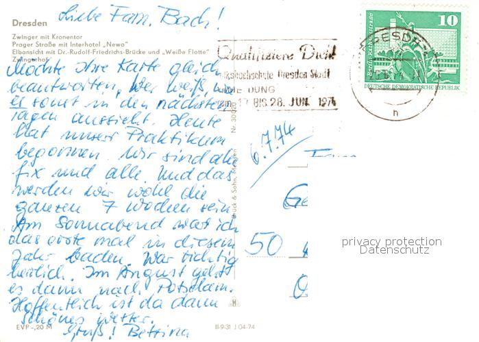 73062336 alte Postkarte DRESDEN Elbe Zwinger Kronentor Prager Strasse Interhotel Newo Elbansicht postalisch gelaufen Erhaltung siehe scans [KathaD81] KatCode: 11110014262000