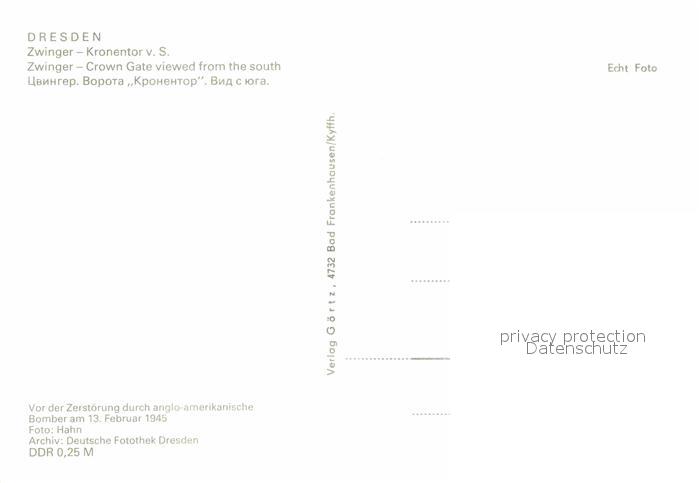 72901174 DRESDEN Elbe Zwinger Kronentor postalisch nicht gelaufen Erhaltung siehe scans [PaolaD17] KatCode: 11110014262000