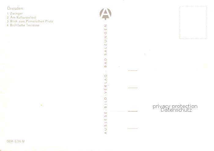 72913703 DRESDEN Elbe Zwinger Kulturpalast Pirnaischer-Platz Bruehlsche Terrasse postalisch nicht gelaufen Erhaltung siehe scans [LiesaD40] KatCode: 11110014262000