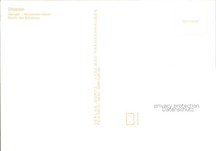 72372074 DRESDEN Elbe Zwinger Neustaedter Markt Strasse der Befreiung postalisch nicht gelaufen Erhaltung siehe scans KatCode: 11110014262000