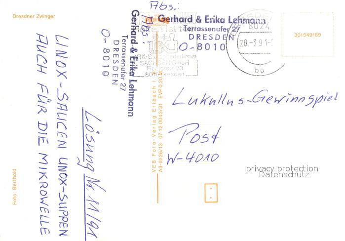 73017820 alte Postkarte DRESDEN Elbe Zwinger Teilansichten postalisch gelaufen Erhaltung siehe scans [WerneD78] KatCode: 11110014262000