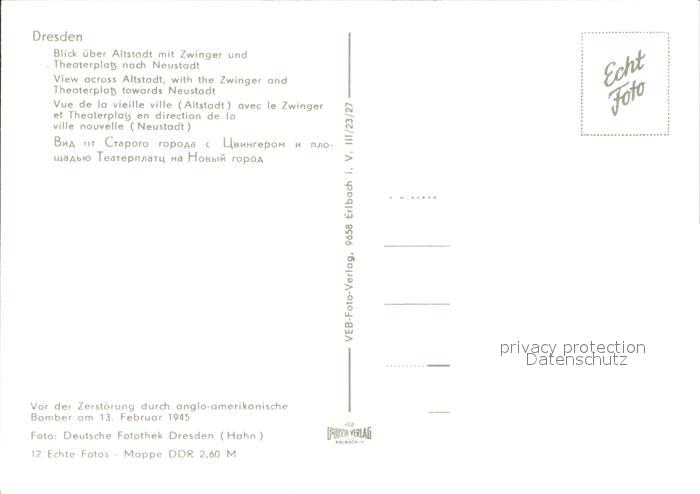 72311459 DRESDEN Elbe Zwinger Theaterplatz postalisch nicht gelaufen Erhaltung siehe scans KatCode: 11110014262000
