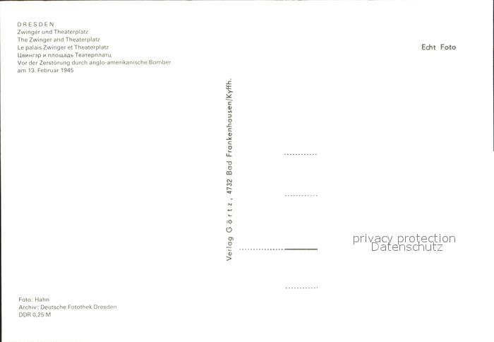 72302587 DRESDEN Elbe Zwinger Theaterplatz postalisch nicht gelaufen Erhaltung siehe scans KatCode: 11110014262000
