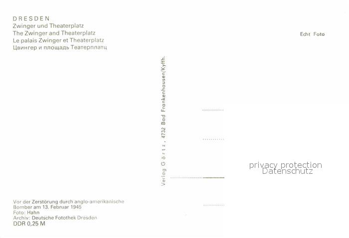 72901177 DRESDEN Elbe Zwinger Theaterplatz postalisch nicht gelaufen Erhaltung siehe scans [PaolaD17] KatCode: 11110014262000