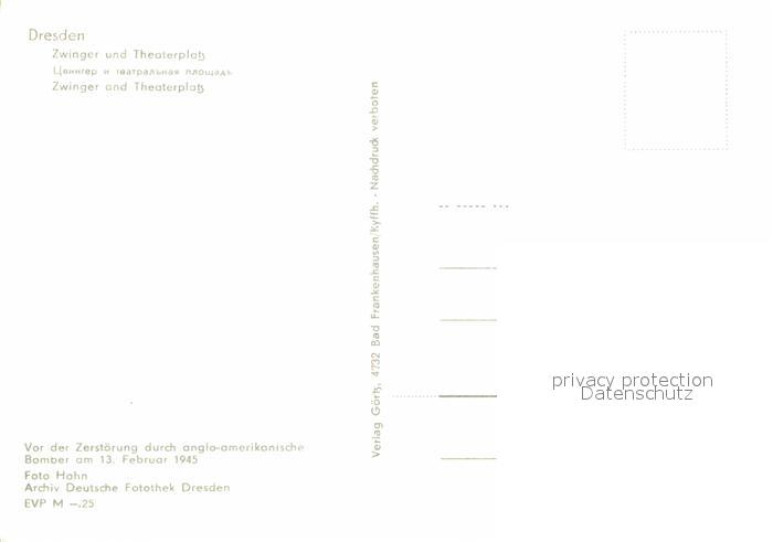 72711509 DRESDEN Elbe Zwinger und Theaterplatz vor der Zerstoerung 1945 Fliegeraufnahme postalisch nicht gelaufen Erhaltung siehe scans [FriedD77] KatCode: 11110014262000