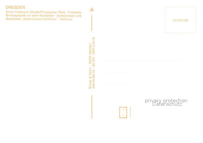 73302384 Dresden Ernst Thaelmann Strasse Pirnaischer Platz Postplatz Bronzeplastik Semperoper Gaststaette Italienisches Doerfchen Rathaus postalisch nicht gelaufen Erhaltung siehe scans [FriedD77] KatCode: 11110014262000