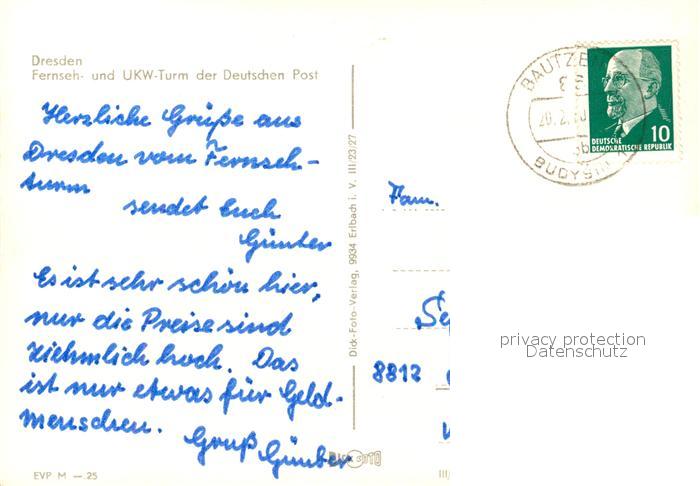 73335656 alte Postkarte Dresden Fernseh- und UKW Turm postalisch gelaufen Erhaltung siehe scans [FriedD77] KatCode: 11110014262000