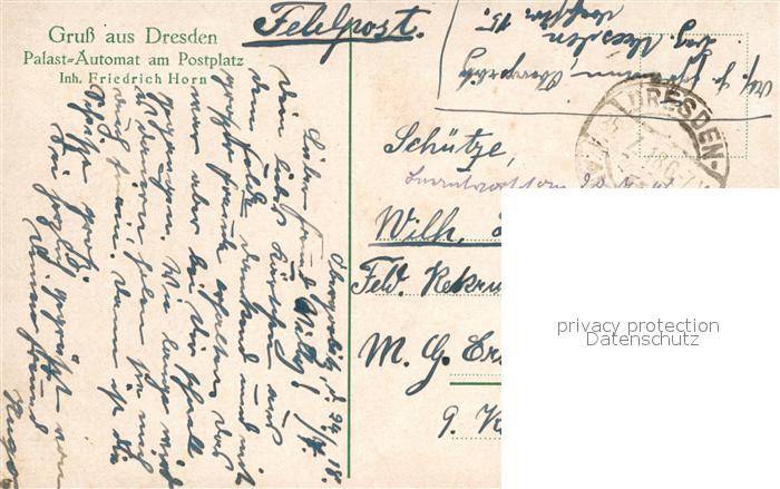 33547138 alte Postkarte Dresden Palast Automat Postplatz postalisch gelaufen Feldpostkarte Erhaltung siehe scans [KathaD81] KatCode: 11110014262000