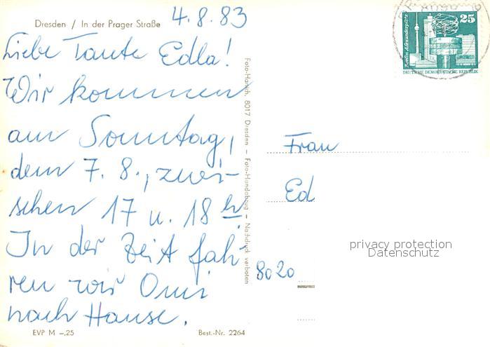 73294635 alte Postkarte Dresden Prager Strasse postalisch gelaufen Erhaltung siehe scans [LiesaD40] KatCode: 11110014262000