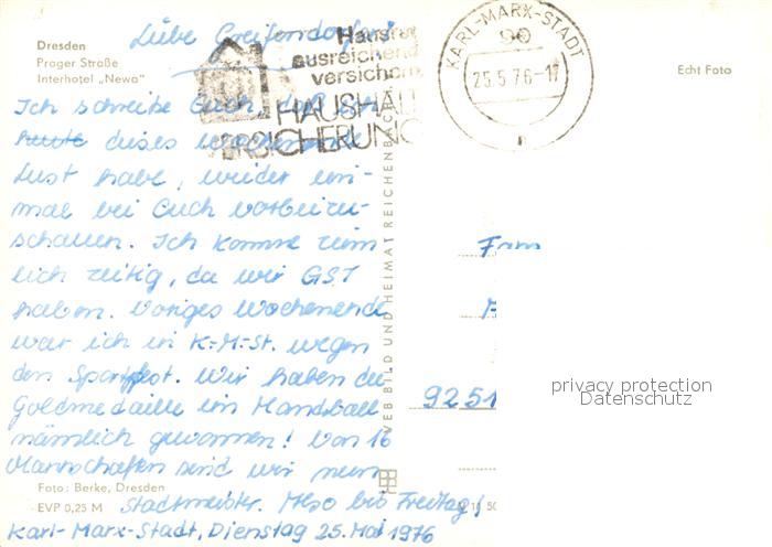 73248751 alte Postkarte Dresden Prager Strasse Interhotel Newa postalisch gelaufen Erhaltung siehe scans [NatalD47] KatCode: 11110014262000