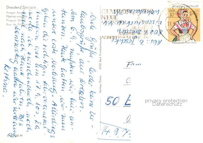 73305987 alte Postkarte Dresden Prager Strasse Plattenbauten Hochhaeuser postalisch gelaufen Erhaltung siehe scans [FriedD77] KatCode: 11110014262000