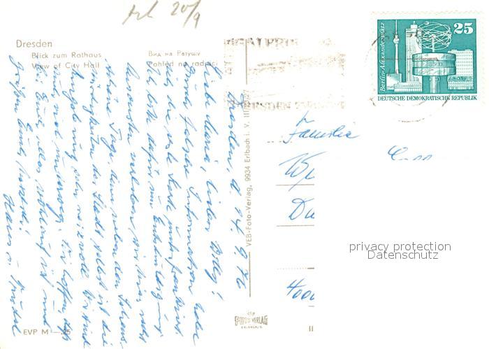 73550616 alte Postkarte Dresden Rathaus postalisch gelaufen Erhaltung siehe scans [WerneD78] KatCode: 11110014262000