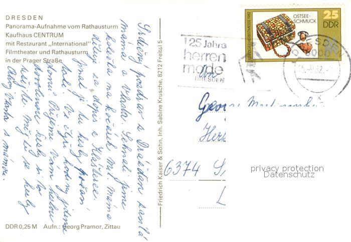 73171179 alte Postkarte Dresden Rathausturm Kaufhaus Centrum Restaurant International postalisch gelaufen Erhaltung siehe scans [NatalD47] KatCode: 11110014262000