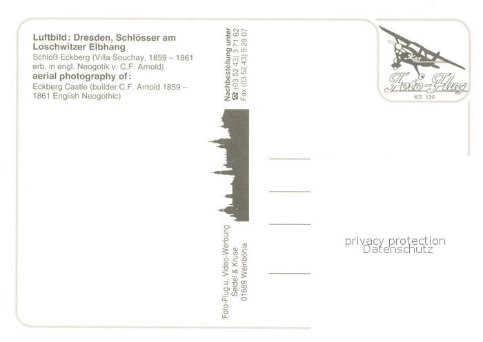 73616120 Dresden Schloss Eckberg Fliegeraufnahme postalisch nicht gelaufen Erhaltung siehe scans [WerneD78] KatCode: 11110014262000
