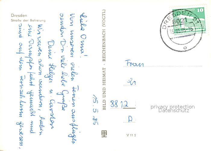 73335992 alte Postkarte Dresden Strasse der Befreiung postalisch gelaufen Erhaltung siehe scans [FriedD77] KatCode: 11110014262000