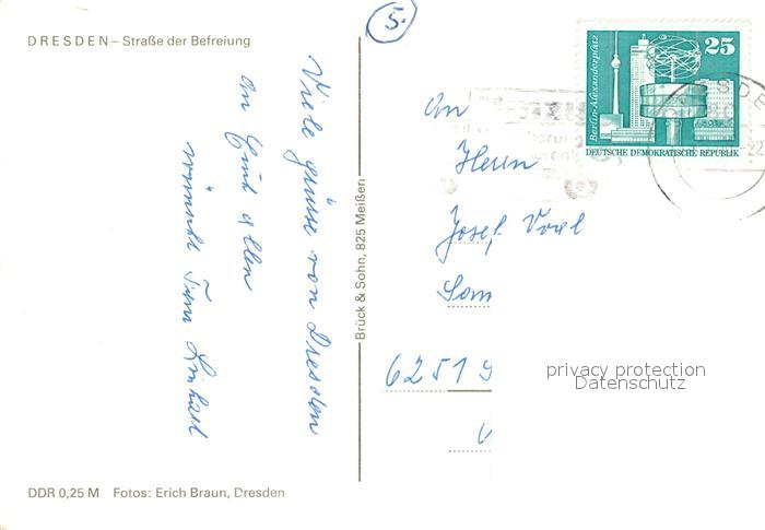 73171175 alte Postkarte Dresden Strasse der Befreiung postalisch gelaufen Erhaltung siehe scans [NatalD47] KatCode: 11110014262000