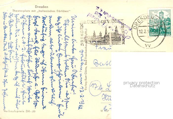 73300722 alte Postkarte Dresden Theaterplatz mit Italienisches Doerfchen postalisch gelaufen Erhaltung siehe scans [FriedD77] KatCode: 11110014262000