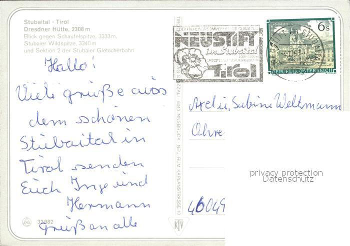 72016831 alte Postkarte Dresdnerhuette Stubaital postalisch gelaufen KatCode: 11390332070334