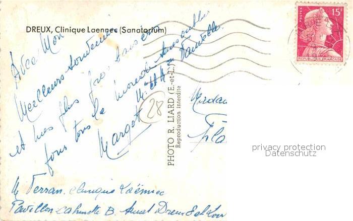 12754341 carte postale Dreux Clinique Laennec Sanatorium postalisch gelaufen Erhaltung siehe scans [FriedD77] KatCode: 11170028328134