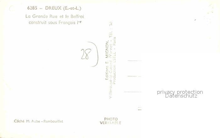 12706639 Dreux Grande Rue et le Beffroi postalisch nicht gelaufen Erhaltung siehe scans [LiesaD40] KatCode: 11170028328134
