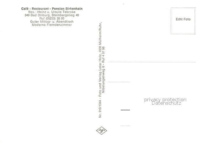 33154874 Driburg Bad Cafe Birkenhain Restaurant postalisch nicht gelaufen Erhaltung siehe scans [KathaD81] KatCode: 11110005762004