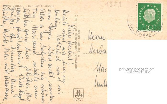 73560251 alte Postkarte Driburg Bad Kur Trinkhalle postalisch gelaufen Erhaltung siehe scans [KathaD81] KatCode: 11110005762004