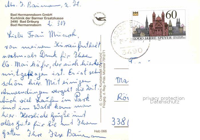 72699079 alte Postkarte Driburg Bad Kurklinik BEK Hermannsborn postalisch gelaufen Erhaltung siehe scans [KathaD79] KatCode: 11110005762004