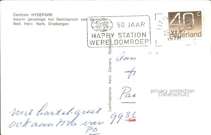 alte Postkarte Driebergen Centrum Hydepark Seminarium Kekr postalisch gelaufen Erhaltung siehe scans