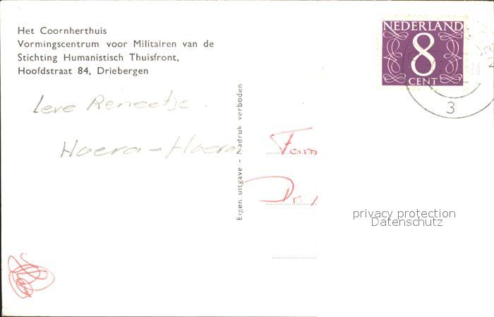 alte Postkarte Driebergen Het Coornherthuis Centrum Militairen Stichting Humanistisch Thuisfront postalisch gelaufen Erhaltung siehe scans