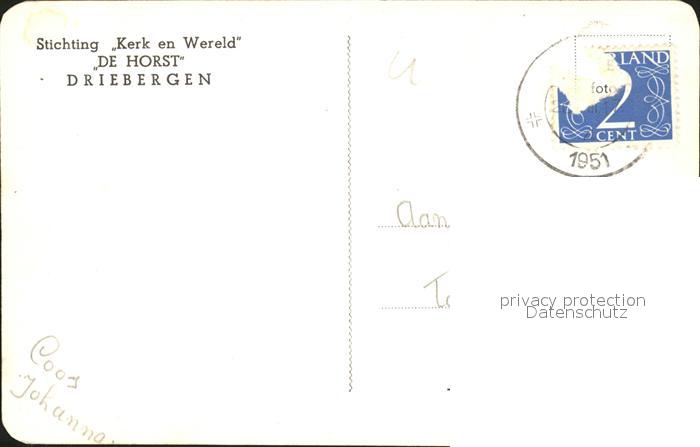 alte Postkarte Driebergen Stichting Kerk en Wereld De Horst postalisch gelaufen Erhaltung siehe scans