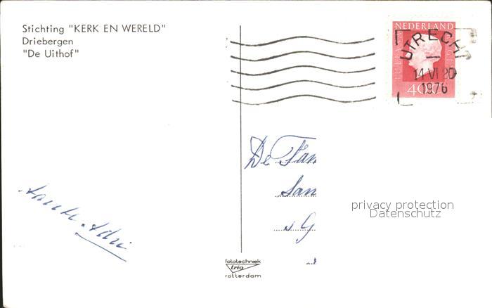 alte Postkarte Driebergen Stichting Kerk en Wereld De Uithof postalisch gelaufen Erhaltung siehe scans