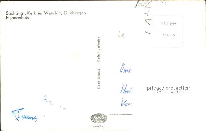 old postcard Driebergen Stichting Kerk en Wereld Eijkmanhuis postalisch gelaufen Erhaltung siehe scans