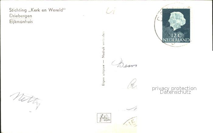 alte Postkarte Driebergen Stichting Kerk en Wereld Eijkmanhuis postalisch gelaufen Erhaltung siehe scans