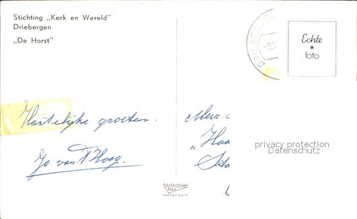 alte Postkarte Driebergen Stichting Kerk Wereld De Horst postalisch gelaufen Erhaltung siehe scans