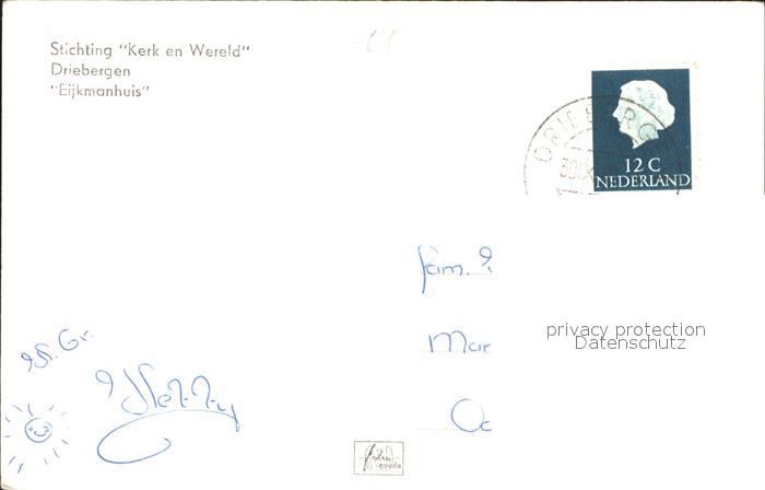 old postcard Driebergen Stichting Kerk Wereld Eijkmanhuis postalisch gelaufen Erhaltung siehe scans