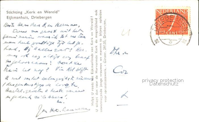 alte Postkarte Driebergen Stichting Kerk Wereld Eijkmanhuis postalisch gelaufen Erhaltung siehe scans