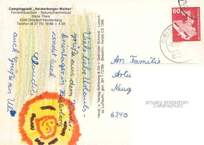 72889121 alte Postkarte Driedorf Camping Heisterberger-Weiher Fliegeraufnahme postalisch gelaufen Erhaltung siehe scans [LiesaD40] KatCode: 11110006532007
