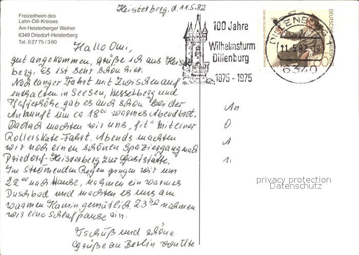 72580506 alte Postkarte Driedorf HeisterbergFreizeitheim Lahn Dill Kreis postalisch gelaufen Erhaltung siehe scans [KathaD79] KatCode: 11110006532007