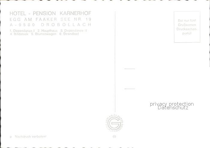 72284858 Drobollach Faaker See Hotel Pension Karnerhof postalisch nicht gelaufen Erhaltung siehe scans KatCode: 11390211020201