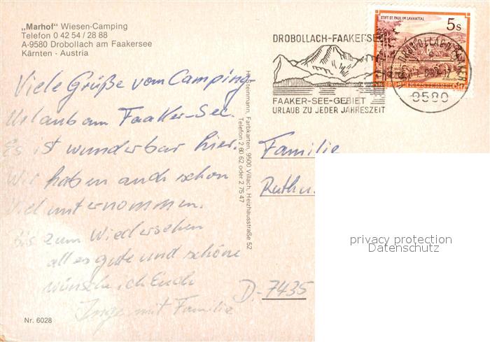 72943014 alte Postkarte Drobollach Faaker See Marhof Wiesencamping postalisch gelaufen Erhaltung siehe scans [KathaD81] KatCode: 11390211020201