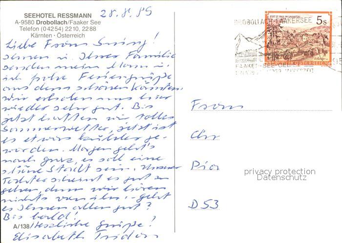 71908743 alte Postkarte Drobollach Faaker See Seehotel Ressmann postalisch gelaufen Erhaltung siehe scans KatCode: 11390211020201