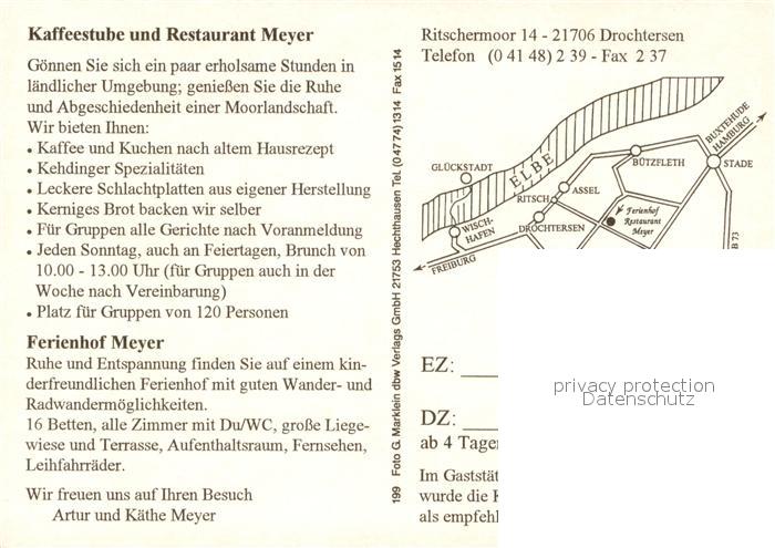 73660392 Drochtersen Ferienhof Restaurant Meyer Terrasse Teich postalisch nicht gelaufen Werbekarte (keine Postkarte) Erhaltung siehe scans [FriedD77] KatCode: 11110003359013