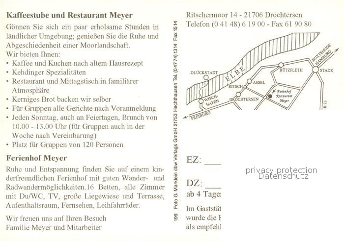 73651588 alte Postkarte Drochtersen Kaffeestube und Restaurant Meyer Gastraeume Terrasse postalisch gelaufen Werbekarte (keine Postkarte) Erhaltung siehe scans [WerneD78] KatCode: 11110003359013